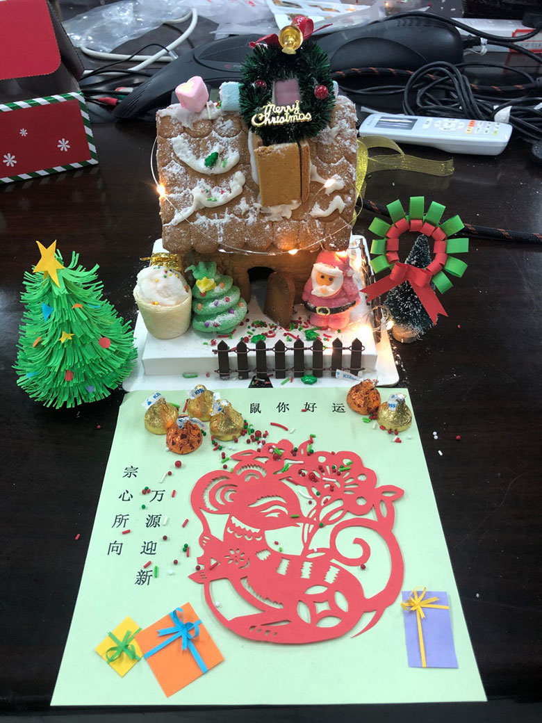 在同事們的通力合作下,小小姜餅屋搭建成功啦,讓我們一起來看看大家的成果吧!