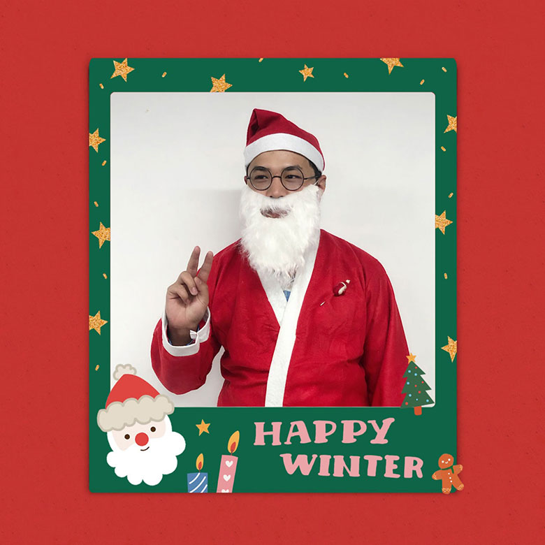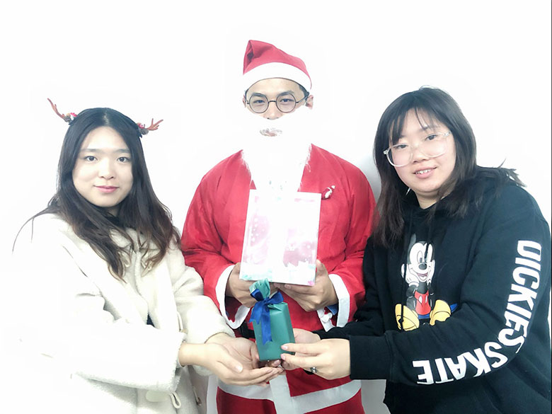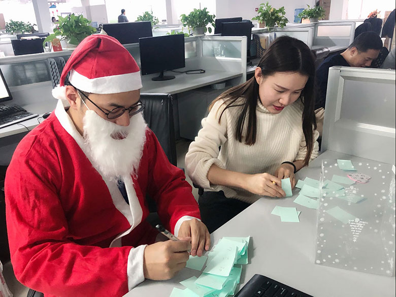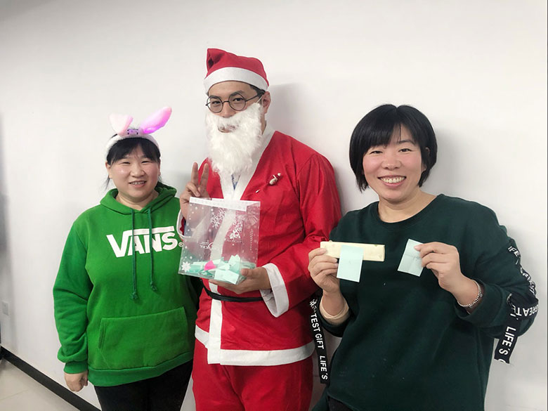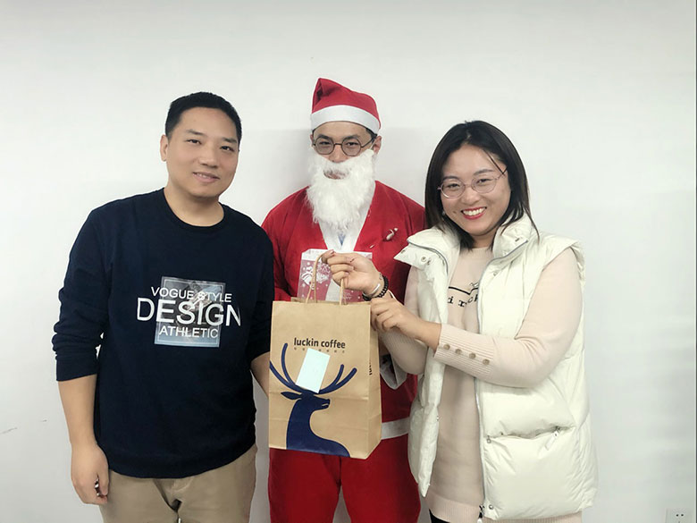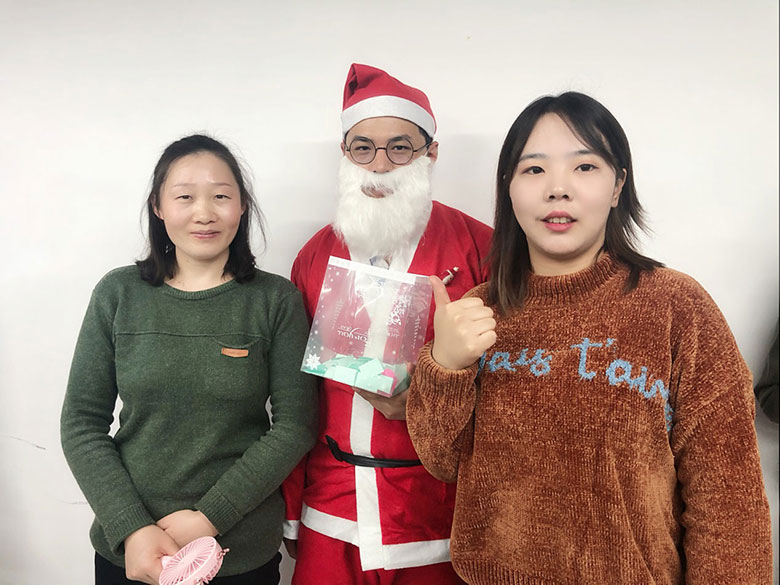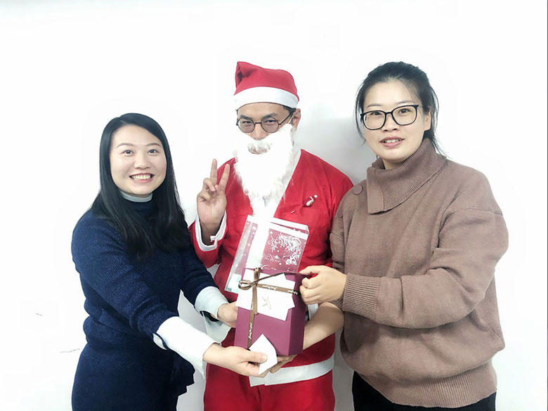 圣誕節(jié)的主角當(dāng)然是圣誕老人啦!猜猜這位白胡子老爺爺是誰(shuí)?哈哈,或許你猜對(duì)啦,他是策劃設(shè)計(jì)部的平面設(shè)計(jì)師連偉,也是在圣誕節(jié)前一天過生日的12月壽星。感謝圣誕老人和我們?nèi)肆Φ男〗憬阋黄?,為大家的歡聚活動(dòng)服務(wù)!
